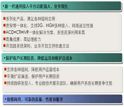 根據(jù)證券行業(yè)的特點,華為提供量身定制的證券業(yè)多媒體聯(lián)絡(luò)中心一體化解決方案。作為與客戶有效溝通交互的平臺,華為多媒體聯(lián)絡(luò)中心結(jié)合了電話、傳真、Email、Web和VoIP等現(xiàn)代通信手段,是實現(xiàn)客戶服務(wù)、銷售及市場推廣等多種目的的高效溝通渠道;谟嬎銠C與通信集成(Computer
