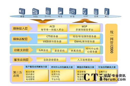 華為多媒體聯(lián)絡(luò)中心系統(tǒng)不僅支持普通語(yǔ)音呼叫的接入,還支持Email、Fax、短信、視頻等多種媒體呼叫接入,以及通過(guò)Web方式發(fā)起的護(hù)航瀏覽、點(diǎn)擊通話、文字交談等呼叫的接入,以語(yǔ)音、文字、圖像等多種媒體的組合為客戶(hù)提供多通道的服務(wù)。用戶(hù)可以同時(shí)通過(guò)語(yǔ)音、圖像、文字多種形式與聯(lián)絡(luò)中心的業(yè)務(wù)代表進(jìn)行交互,極大的拓寬了用戶(hù)與業(yè)務(wù)代表之間信息交互的空間,提高了信息交互的效率。
