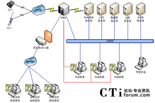 呼叫中心是一種基于CTI技術(shù)、充分利用通信網(wǎng)和計算機網(wǎng)的多項功能集成,并與企業(yè)連為一體的一個完整的綜合信息服務系統(tǒng),利用現(xiàn)有的各種先進的通信手段,效地為客戶提供高質(zhì)量、高效率、全方位的服務。表面上看,呼叫中心是企業(yè)在最外層加上了一個服務層。實際上,它不僅對企業(yè)的外部用戶具有服務功能,同時也為企業(yè)內(nèi)部的管理、服務、調(diào)度、增值起到非常重要的協(xié)調(diào)作用。CTI論壇編輯