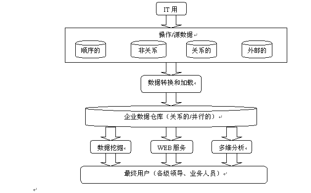 數(shù)據(jù)倉庫是信息技術(shù)領(lǐng)域的新概念,是近幾年來迅速發(fā)展起來的一種信息存儲及管理技術(shù)。它存儲各種大量的、決策分析所需要的、歷史的、分散的數(shù)據(jù),經(jīng)過處理將這些數(shù)據(jù)轉(zhuǎn)換成集中統(tǒng)一、隨時可用的信息。它能方便地提供隨機查詢和各種分析處理,它具有在任何時間、就任何業(yè)務(wù)、回答任何問題的能力;利用數(shù)據(jù)倉庫前端的數(shù)據(jù)挖掘工具和人工智能算法建立各種調(diào)查、分析和預(yù)測模型。