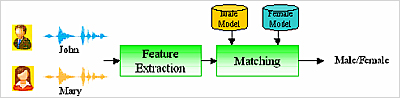 性別辨識(Gender Recognition)技術(shù)是以語音訊號處理的方法,擷取說話者的聲音特征,藉此判斷說話者的性別是男性或女性,如下流程圖所示的技術(shù)。