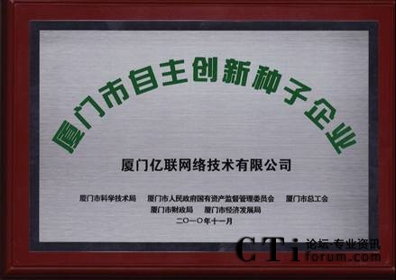 根據(jù)國家科技部、國務(wù)院國資委和全國總工會三部委制定的“創(chuàng)新型企業(yè)試點工作實施方案”和廈門市“技術(shù)創(chuàng)新引導(dǎo)工程實施方案”具體要求,市科技局、市國資委、市總工會、市財政局、市經(jīng)發(fā)局聯(lián)合開展了2010年廈門市自主創(chuàng)新示范、試點、種子企業(yè)評選工作。經(jīng)專家評審和市五部門聯(lián)合審核后,廈門億聯(lián)網(wǎng)絡(luò)技術(shù)有限公司(以下簡稱億聯(lián))憑借科技、環(huán)保的產(chǎn)品和強大的研發(fā)實力獲得了廈門市自主創(chuàng)新種子企業(yè)獎。CTI論壇報道