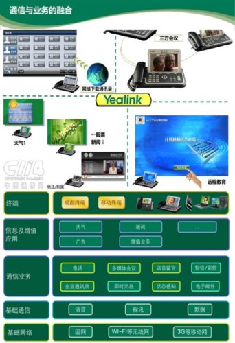 億聯(lián)專注于VoIP領(lǐng)域的發(fā)展,見證了整個(gè)終端發(fā)展過程:從由傳統(tǒng)的模擬/數(shù)字電話、IP語音電話、IP視頻話機(jī),到多媒體信息終端階段。每前進(jìn)一步,都擁有上一步的所有功能,并再延伸出更核心的應(yīng)用。