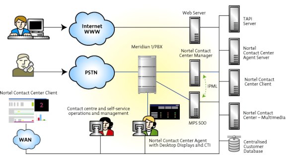 互聯(lián)網(wǎng)網(wǎng)址、PSTN、北電聯(lián)絡(luò)中心客戶端、WAN、Meridian1/PBX、聯(lián)絡(luò)中心和自助服務(wù)操作及管理、Web服務(wù)器、北電聯(lián)絡(luò)中心管理器、IPML、MPS500、帶桌面顯示器和CTI的北電聯(lián)絡(luò)中心座席、TAPI服務(wù)器、北電聯(lián)絡(luò)中心代理服務(wù)器、北電聯(lián)絡(luò)中心客戶端、北電聯(lián)絡(luò)中心—多媒體、中央客戶數(shù)據(jù)庫(kù)。