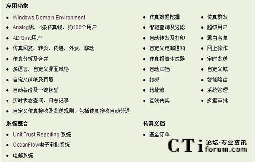 大新銀行Information Technology Division 項(xiàng)目經(jīng)理Benjamin Chu指出:“OceanFax Fax Server具有全面而強(qiáng)大的功能,支持電子傳真及自動(dòng)傳真,系統(tǒng)易使用和管理;通過與Unit Trust Reporting系統(tǒng)及OceanFlow電子審批系統(tǒng)的整合,理順大新銀行投資基金業(yè)務(wù),實(shí)現(xiàn)工作的自動(dòng)流程。該整合能提高效率、降低成本、保證信息安全及快速帶來投資回報(bào)。”