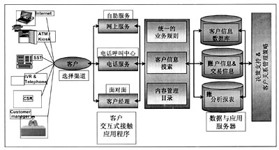 2.統(tǒng)一的客戶分析和服務(wù)管理平臺:銀行的目標(biāo)是在所有同客戶接觸的渠道上(包括電話、網(wǎng)絡(luò)等),都建立起統(tǒng)一的客戶服務(wù)手段,客戶可以按照自己喜好的方式,同銀行接觸,來實現(xiàn)對不同的銀行業(yè)務(wù)的處理要求。如何科學(xué)地分析和預(yù)測客戶的行為,如何統(tǒng)一地協(xié)調(diào)管理多個客戶服務(wù)渠道,保證對客戶的一致性承諾,是銀行發(fā)展客戶關(guān)系管理所必須考慮的第二個問題。因此,銀行必須具有統(tǒng)一的客戶分析和服務(wù)管理工具,從而真正發(fā)揮銀行客戶關(guān)系管理的優(yōu)勢。