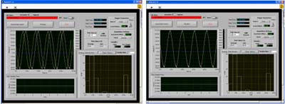 當(dāng)兩個(gè)(或多個(gè))設(shè)備一起工作并對(duì)時(shí)間有精確要求的時(shí)候,就需要在它們之間進(jìn)行同步。同步是基于在兩個(gè)設(shè)備之間規(guī)定一個(gè)共同的時(shí)間參考,試想如果將不同音軌的音頻訊號(hào)分別錄在不同的磁帶機(jī)上,則必須將這兩個(gè)磁帶機(jī)的磁帶傳送軸鎖定在一起,否則將來?yè)芊懦鰜砭蜁?huì)有相位上的誤差,這個(gè)過程就稱為同步。假使這兩個(gè)設(shè)備沒有進(jìn)行同步,無論它們開始的時(shí)間多么一致,也會(huì)由于兩臺(tái)設(shè)備在機(jī)械結(jié)構(gòu)的差異而產(chǎn)生時(shí)間漂移。同樣的,對(duì)于數(shù)據(jù)采集卡也是一樣的概念,甚至在要求上更為嚴(yán)格。而如何達(dá)到數(shù)據(jù)同步采集,最基本的要求就是不同模塊間要有相同的工作時(shí)脈與一致的觸發(fā)信號(hào),而這個(gè)相同的時(shí)脈信號(hào)需來自于共同的外部?jī)x器。下圖中的弦波是兩張數(shù)據(jù)采集卡在同步與異步采集同一信號(hào)源所得的波形,在左圖中因異步而存在一向位差,右圖中則是同步觸發(fā)下得到完全重迭的波形。