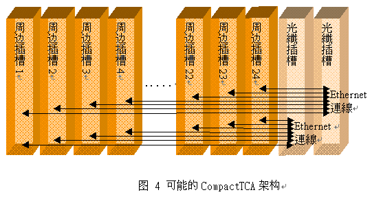 高可靠度CompactPCI 系統(tǒng)的下一步發(fā)展將是去除系統(tǒng)插槽(system slot);因?yàn)閼?yīng)用程序利用現(xiàn)今系統(tǒng)的IP互聯(lián),PCI總線逐漸成為派不上用場的費(fèi)用。PICMG協(xié)會現(xiàn)正進(jìn)行CompactTCA的規(guī)格制訂,CompactTCA規(guī)格可望結(jié)合AdvancedTCA(PICMG