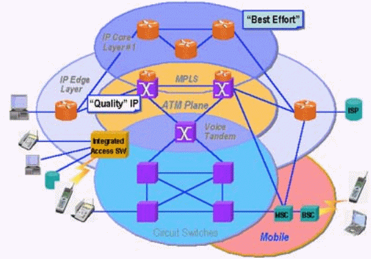 目前使用最廣泛的兩個網(wǎng)絡一個是電話交換網(wǎng)絡,其中包括固定電話網(wǎng)和移動電話網(wǎng),另一個是IP網(wǎng)絡,包括Internet,Intranet和Extranet。