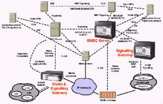 本例中的媒體網(wǎng)關控制器(MGC)終結所有的信令,包括直接傳輸?shù)暮屯ㄟ^IP的信令,完成如一個SIP電話向PSTN網(wǎng)絡發(fā)送信號之類的信令互通,還對打到VoIP網(wǎng)絡的呼叫進行鑒權和選擇路由,并提供計費信息。這個MGC還通過SIP/SIP-T,H.323或Q.BICC與其他的MGC通信。