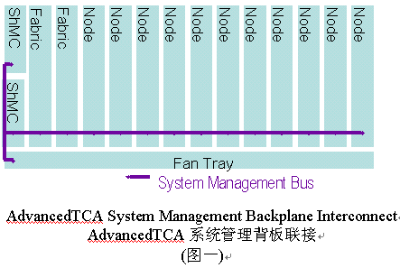 管理系統(tǒng)的信息傳輸和IPMI(智能平臺管理接口)指令集被用作對ATCA框架的管理,包括對電源的管理、電子鑰匙和機架內(nèi)溫度的監(jiān)控。系統(tǒng)管理是通過機框管理控制器(ShMC)執(zhí)行的。機框管理控制器(ShMC)負(fù)責(zé)完成對ACTA系統(tǒng)中的現(xiàn)場置換單元(Field