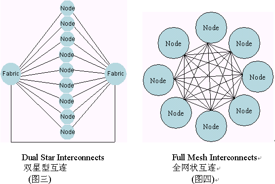 交換接口是ATCA機框中的主要數(shù)據(jù)傳輸接口。ATCA協(xié)議在每個板子上定義了多達(dá)15個通訊通路。這些通訊通路可以被配置成全網(wǎng)狀拓?fù)浣Y(jié)構(gòu)或雙星型拓?fù)浣Y(jié)構(gòu)。在雙星拓?fù)浣Y(jié)構(gòu)中每塊板同兩個不同的交換板都有通路。交換板在機框中扮演交換核心的角色。在全網(wǎng)狀拓?fù)浣Y(jié)構(gòu)中,每一個單板與其它任意單板都保持一個鏈接通路。下圖描繪了雙星型和全網(wǎng)狀結(jié)構(gòu)中的內(nèi)部互鏈的配置。