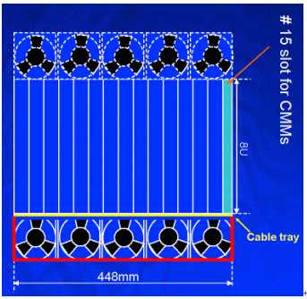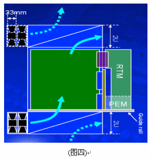 另外在機架內(nèi)的放置空間上,42U的標準機架里可以放3臺12~14U機箱,若將機箱降至10U則可以放置4臺,這樣可以增加整體空間的利用率,所以有了10U機箱的設(shè)計需求。在各種不同高度的機箱設(shè)計中,風扇散熱系統(tǒng)的放置位置、方式與總散熱效能能夠達到200*14=2800W,將會是ATCA機箱設(shè)計所要考慮的最重要因素之一,尤其是在10U的機箱設(shè)計上。