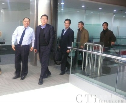 CTI論壇(ctiforum)3月4日消息(記者 張塵):2010年1月29日,昆山市副市長、花橋經(jīng)濟(jì)開發(fā)區(qū)管委會主任任雪元及招商局顧志榮副局長,王春陽等人一行赴飛翱集團(tuán)(800 TeleServices)在花橋新落成的運(yùn)營中心參觀訪問。 圖:任雪元副市長(左二)與顧志榮副局長(左三)在飛翱集團(tuán)主席黃有權(quán)(左一)
