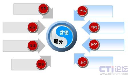 首先看一下服務(wù)營(yíng)銷(xiāo)的理念,有必要來(lái)溫故一下。在傳統(tǒng)的制造業(yè)中,即在工業(yè)經(jīng)濟(jì)的模式下,服務(wù)和營(yíng)銷(xiāo)是截然分割的,一般大家都認(rèn)為,營(yíng)銷(xiāo)在前,服務(wù)在后。服務(wù)有幾大特性,比如在購(gòu)買(mǎi)了產(chǎn)品后才會(huì)有相關(guān)的服務(wù),服務(wù)是無(wú)形的商品,企業(yè)建立的是售后服務(wù)體系。另外,大家都認(rèn)為服務(wù)沒(méi)有辦法進(jìn)行標(biāo)準(zhǔn)化,從這個(gè)角度說(shuō),大家一看到服務(wù),就會(huì)聯(lián)想:客服、成本、務(wù)虛、被動(dòng)等詞匯。服務(wù)體現(xiàn)的是一種理念,所以大家認(rèn)為比較虛。說(shuō)到服務(wù)是被動(dòng)的,實(shí)際是與營(yíng)銷(xiāo)相比,營(yíng)銷(xiāo)是比較主動(dòng)的。拿呼叫中心來(lái)說(shuō),客服人員坐在座位上,等待著客戶打來(lái)電話,而不能對(duì)電話進(jìn)行預(yù)測(cè),下一個(gè)小時(shí)會(huì)有多少呼入電話產(chǎn)生、投訴的內(nèi)容會(huì)有哪些、咨詢業(yè)務(wù)量會(huì)有多大,這些誰(shuí)也不能進(jìn)行準(zhǔn)確預(yù)測(cè),所以說(shuō)服務(wù)相對(duì)比較的被動(dòng)。再說(shuō)營(yíng)銷(xiāo),大家談營(yíng)銷(xiāo)時(shí),能想到的詞匯有:產(chǎn)品、利潤(rùn)、務(wù)實(shí)、主動(dòng)。因?yàn)闋I(yíng)銷(xiāo)是與產(chǎn)品掛鉤,營(yíng)銷(xiāo)又可以賺取利潤(rùn)。另外,之所以說(shuō)營(yíng)銷(xiāo)是務(wù)實(shí)的,因?yàn)闋I(yíng)銷(xiāo)是有指標(biāo)的,每個(gè)月要進(jìn)行考核。同樣如果從呼叫中心的角度談電銷(xiāo),它是一種主動(dòng)式的外呼。