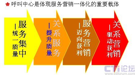 談到服務(wù)營(yíng)銷(xiāo)與呼叫中心的關(guān)系,我認(rèn)為服務(wù)營(yíng)銷(xiāo)為呼叫中心重新做了定位。電子商務(wù)+呼叫中心模式是服務(wù)營(yíng)銷(xiāo)理念的充分體現(xiàn),將呼叫中心從后臺(tái)推向前臺(tái)。非常典型的例子就是攜程,攜程準(zhǔn)備在南通建一個(gè)1萬(wàn)5千個(gè)坐席的呼叫中心。攜程最開(kāi)始做的是客服,大家看到網(wǎng)站上的產(chǎn)品后,就會(huì)給攜程打電話。后來(lái),攜程主動(dòng)給客戶發(fā)短信,告訴客戶要去的目的地的天氣,而現(xiàn)在,攜程主動(dòng)地外呼了。如果是商旅客戶,有三個(gè)月沒(méi)有在攜程訂票,攜程就會(huì)主動(dòng)地給客戶打電話,問(wèn)客戶為什么最近沒(méi)有使用攜程的服務(wù)。攜程經(jīng)過(guò)這么多年的客戶積累后,逐漸地將客戶進(jìn)行了細(xì)分。在服務(wù)的基礎(chǔ)上,逐漸地進(jìn)行新的營(yíng)銷(xiāo),包括現(xiàn)在攜程也有了自己的酒店品牌,不斷地將自己的價(jià)值鏈進(jìn)行擴(kuò)展,這也是對(duì)電子商務(wù)+呼叫中心模式的充分體現(xiàn)。另一方面,在傳統(tǒng)制造業(yè)向現(xiàn)代服務(wù)業(yè)轉(zhuǎn)型的過(guò)程中,同樣將呼叫中心(客服中心)從后臺(tái)推向前臺(tái)。從中國(guó)制造到中國(guó)服務(wù),包括招標(biāo)、投資等,地方性政府也希望引入服務(wù)型企業(yè)的進(jìn)入,改變以前的依靠資源、消耗資源的產(chǎn)業(yè)形態(tài)。在向服務(wù)業(yè)轉(zhuǎn)型的過(guò)程中,提出許多的理念:數(shù)據(jù)中心、技術(shù)支持中心、客戶服務(wù)中心等。很多大的企業(yè)都經(jīng)過(guò)了從客戶服務(wù)集中,到業(yè)務(wù)系統(tǒng)慢慢的集中,到現(xiàn)在服務(wù)的中心,都在通過(guò)呼叫中心實(shí)現(xiàn)業(yè)務(wù)的增值,呼叫中心也不再是一個(gè)附屬品,逐漸地從后臺(tái)走向了前臺(tái)。