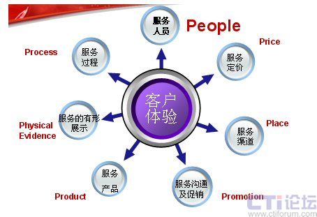 下面這張圖是服務(wù)營(yíng)銷(xiāo)的7P模型,在這里我認(rèn)為最應(yīng)該關(guān)注的是People——人。這里,我想引用世界經(jīng)理人刊登的一篇文章“影響中國(guó)的十大管理理念”上的一段文字:“邁向服務(wù)型經(jīng)濟(jì)實(shí)際上就是邁向人才經(jīng)濟(jì)。在制造業(yè)中,價(jià)值是由機(jī)器創(chuàng)造的。在服務(wù)業(yè)中,價(jià)值則是人創(chuàng)造的。”這也是在服務(wù)業(yè)中,要將“人”進(jìn)行體現(xiàn)。也許你不在乎為你制造產(chǎn)品的工人長(zhǎng)的美或丑,但為客戶服務(wù)的人員如果長(zhǎng)的很丑,對(duì)服務(wù)就會(huì)有一定的影響。大家只看產(chǎn)品結(jié)果,不關(guān)注過(guò)程,但是服務(wù)卻是與過(guò)程緊密的結(jié)合。
