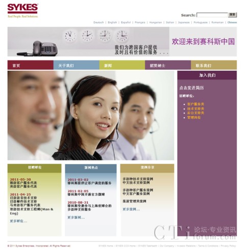CTI論壇(ctiforum)8月8日消息(記者 潘婷婷): 為了更全方位地展現(xiàn)賽科斯中國(guó)的公司風(fēng)貌,公司網(wǎng)站(www.sykes.com.cn)經(jīng)改版后于8月4日全新登場(chǎng)。新網(wǎng)站在風(fēng)格、結(jié)構(gòu)、內(nèi)容等方面作了整體改進(jìn),使得整個(gè)網(wǎng)站的表現(xiàn)更清晰,界面更友好。CTI論壇報(bào)道
