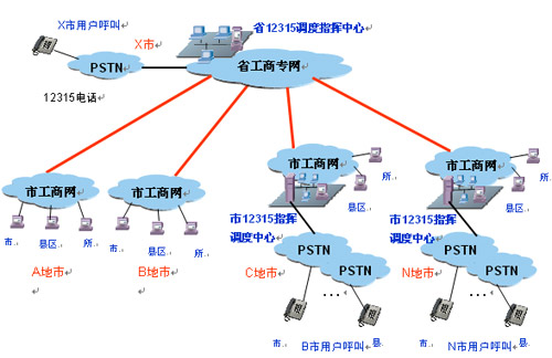 - 利用了國家公眾電信網(wǎng),實(shí)現(xiàn)全省12315信息網(wǎng)及消費(fèi)者話音網(wǎng)絡(luò)的綜合高速公路。