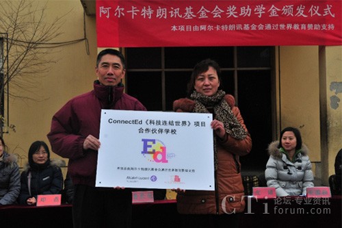 CTI論壇(ctiforum)3月6日消息(記者 浩宇):近日,法國阿爾卡特朗訊基金會(Alcatel-Lucent Foundation)與美國非營利組織世界教育(World Education)在北京市大興區(qū)農(nóng)民工子弟學(xué)!埡W(xué)校聯(lián)合舉辦公益助學(xué)活動(dòng),來自阿爾卡特朗訊中國旗艦企業(yè)——上海貝爾及世界教育的志愿者為45名貧困生、72名成績優(yōu)秀學(xué)生、244名成績進(jìn)步獎(jiǎng)獲得者共計(jì)361人發(fā)放獎(jiǎng)助學(xué)金和獎(jiǎng)狀。此次活動(dòng)是ConnectEd“科技連結(jié)世界”項(xiàng)目協(xié)助流動(dòng)青少年“透過科技擁抱世界”系列公益活動(dòng)的重要一站,ConnectEd “科技連結(jié)世界”項(xiàng)目由阿爾卡特朗訊基金會(Alcatel-Lucent Foundation)與世界教育(World Education)共同在全球推動(dòng)。作為志愿者之一,上海貝爾執(zhí)行副總裁、阿爾卡特朗訊中國區(qū)產(chǎn)品與研發(fā)負(fù)責(zé)人莊靖博士參與了此次活動(dòng),并為阿爾卡特朗訊ConnectEd項(xiàng)目合作校揭牌。雙方還在北京市昌平區(qū)新源學(xué)校舉行了公益助學(xué)活動(dòng),為45名貧困生、39名成績優(yōu)秀學(xué)生、52名成績進(jìn)步獎(jiǎng)獲得者共計(jì)136人發(fā)放獎(jiǎng)助學(xué)金。