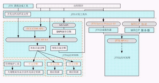 Programming Interface),即jTTS API 4.0,以及統(tǒng)一的多語(yǔ)種引擎管理模塊,即jTTS_ML.DLL。多語(yǔ)種的引擎(例如中文引擎jTTS_CH.DLL,英文引擎jTTS_EN.DLL等)在多語(yǔ)種引擎管理模塊的調(diào)度下進(jìn)行實(shí)際的合成工作,而目前尚未提供的其他語(yǔ)種的引擎也可以方便地加入到這個(gè)體系結(jié)構(gòu)中來。