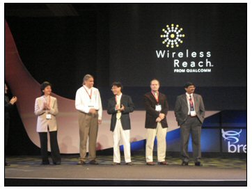 同時,作為“無線關(guān)愛”計劃brew應用基金的獲獎者,在伊麗莎白舞廳接受了來自高通的最佳公共服務應用獎頒獎(頒發(fā)給為在全球范圍內(nèi)促進欠發(fā)達地區(qū)經(jīng)濟和社會發(fā)展而做出積極貢獻的最佳應用)。同時獲此支持的還有印度Tata