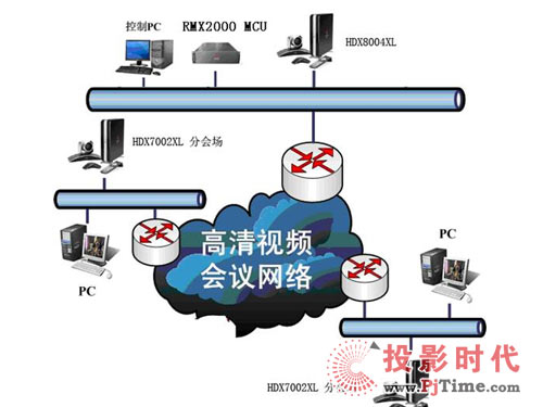 - 采用2Mbps專線方式組網,實現(xiàn)全高清視頻會議