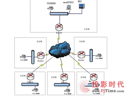 華夏人壽視頻會議系統(tǒng)配置情況:整個系統(tǒng)選配美國POLYCOM視頻會議系統(tǒng),其中主控制中心選用1臺MGC100 MCU 作為多點(diǎn)會議的中央處理平臺,主會場采用主機(jī)攝像頭分體式的高端視頻終端VSX8000,下面各分會場均選用VSX6000會議室終端產(chǎn)品60臺,這些終端與1臺MGC-100(70 USER)多點(diǎn)控制單元(MCU)相連,組成了華夏人壽的視頻會議系統(tǒng)華夏人壽視頻會議系統(tǒng)網(wǎng)絡(luò)采用了基于IP的H.323解決方案,速率768Kbps,整個系統(tǒng)能最充分的利用網(wǎng)絡(luò)帶寬提高網(wǎng)絡(luò)運(yùn)行效率,建成后的系統(tǒng)無論在升級和擴(kuò)展性方面都更加靈活方便。投影時代