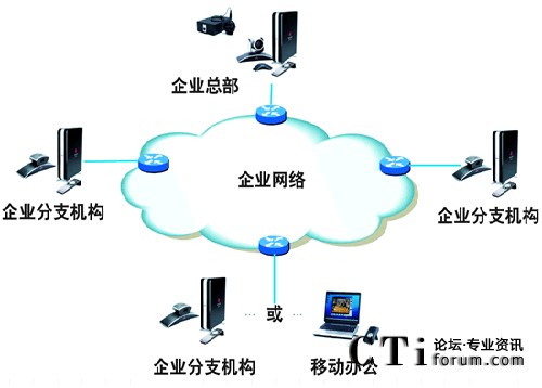 - 公司總部采用HDX7000高清終端,集成四方會議單元,配置全向吊頂MIC