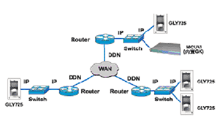 在這幾個(gè)不同的辦公地點(diǎn)的會(huì)議室分別配置一臺(tái)視頻會(huì)議終端設(shè)備,在主會(huì)議室中再配置一臺(tái)多點(diǎn)控制單元MCU,即可實(shí)現(xiàn)商業(yè)用戶在同城的幾個(gè)辦公室之間進(jìn)行視頻通信。該方案的組網(wǎng)非常簡(jiǎn)單,不需要企業(yè)租用電信的線路,也不需要多購(gòu)買(mǎi)其他網(wǎng)絡(luò)設(shè)備,只需為每臺(tái)設(shè)備分配私有的IP地址,就能實(shí)現(xiàn)視頻通信。