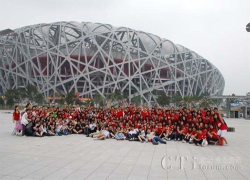 6月25、26 日,在北京奧組委的組織下,觀眾呼叫中心所有志愿者分兩批對(duì)奧林匹克公園進(jìn)行了踏勘。此次踏勘的目的是通過(guò)對(duì)奧運(yùn)主要場(chǎng)館群的參觀,使隊(duì)員們?cè)诖竽X中形成對(duì)“鳥(niǎo)巢”和“水立方”所在的奧林匹克公園場(chǎng)館群中各場(chǎng)館的分布方位的直觀印象。CTI論壇報(bào)道