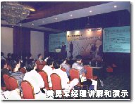 通過兩位演講者深入淺出的講解,看來聆聽者已經(jīng)對文正明的iUnicenter網(wǎng)絡(luò)化客戶服務(wù)中心的構(gòu)成、應(yīng)用有了大致的了解,但與會的證券業(yè)人士關(guān)心的不僅是這套解決方案理論上的優(yōu)越,他們更渴望見到實際上的表現(xiàn)如何,于是,文正明公司規(guī)劃發(fā)展部付總經(jīng)理黃勇軍就用一氣呵成的模擬演示給了他們完美的答案。