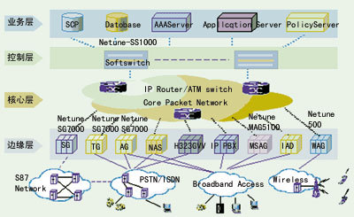 Softswitch體系結(jié)構(gòu)將下一代網(wǎng)絡共劃分為四層:邊緣接入層、核心傳送層、控制層和業(yè)務應用層,各層之間采用明確的標準化接口(而不是各廠家自己所設計的專用接口)。Softswitch提供綜合接入能力,支持種類眾多的終端設備,可以完成與現(xiàn)有PSTN/ISDN、PLMN、IN和Internet網(wǎng)的互通,使用戶完全屏蔽網(wǎng)絡的變革。