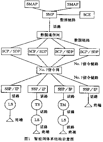 --智能網是通過業(yè)務交換點(SSP)、業(yè)務控制點(SCP)、數據庫(SDP)、智能外設(IP)以及業(yè)務管理點(SMP)、業(yè)務生成環(huán)境(SCE)等來生成和實現新業(yè)務的。它可以為所有的通信網絡服務,無論是PSTN、PSPDN、PLMN、N-ISDN。圖1所示是PSTN、PLMN、N-ISDN還是B-ISDN。圖1所示為我國目前智能網的結構,其中的SMAP是業(yè)務管理接入點。LS是市話交換,TS是長途交換級,TM為匯接局。
