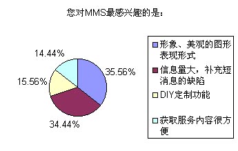 題8的調查結果對于中國移動來講絕對是充滿誘惑的,高達91.11%的被訪者表示他們非常愿意嘗試MMS的功能和服務,無疑這對ICP們(MMS服務的重要載體)也是一針強心劑!