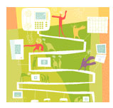 決定怎樣配置數(shù)據(jù)語(yǔ)音的綜合網(wǎng)絡(luò)不僅僅與硬件和軟件有關(guān),它還影響到人員的問(wèn)題。一旦牽涉到IP電話(huà),原先對(duì)于電話(huà)系統(tǒng)和IT系統(tǒng)的管理人員及專(zhuān)家的技術(shù)要求就變得模糊不清了。