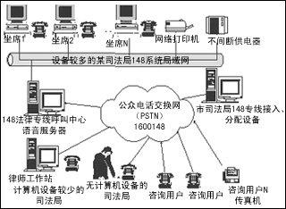此方案使用后,以市為中心,可把周邊的各個縣、各個區(qū)聯(lián)成一個統(tǒng)一的148法律服務(wù)整體,各個縣、各個區(qū)的咨詢用戶只需要知道一個統(tǒng)一的148法律服務(wù)電話號碼,就可與最近的148法律服務(wù)臺接通進行法律咨詢。