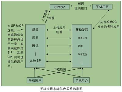 在這樣一個全新的銷售模式下,運營商的作用也越發(fā)凸顯出來!皦艟W(wǎng)是一個大的平臺,SP是個小平臺,SP再通過與CP建立合作,進而將整個應(yīng)用市場與終端連接起來,F(xiàn)在,我們?nèi)康膽?yīng)用都放到夢網(wǎng)上面了!北本﹫笸娮由虅(wù)公司的一個工作人員說。移動夢網(wǎng)的建立,事實上在手機廠商、應(yīng)用開發(fā)商、用戶三者之間搭了一個橋梁,將各種手機應(yīng)用集中在一個門戶網(wǎng)站,用戶需要時,只需登陸到夢網(wǎng)上面,點擊相關(guān)的網(wǎng)頁,就可隨時下載所需要的應(yīng)用。
