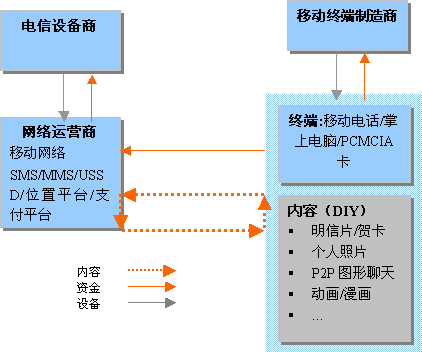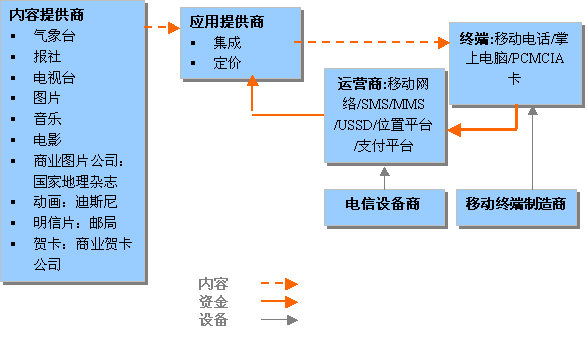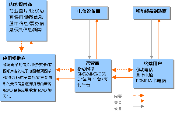 MMS業(yè)務(wù)產(chǎn)業(yè)價(jià)值鏈的主要環(huán)節(jié)包括網(wǎng)絡(luò)運(yùn)營商,終端,應(yīng)用提供商,內(nèi)容提供商等,各環(huán)節(jié)的狀況直接影響著MMS業(yè)務(wù)的發(fā)展?fàn)顩r與市場前景。