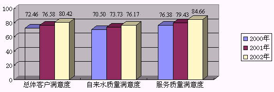 (2)率先建立以公布水質(zhì)信息為特點的客戶宣傳系列。過去水質(zhì)具有保密性,不能向外公開。近年來,市政府為改善水質(zhì)投入了大量的資金,使自來水質(zhì)量達到或超過了國家飲用水標準,但受各種飲用水產(chǎn)品的宣傳影響,人們對自來水疑慮重重。據(jù)客戶滿意度調(diào)查,客戶對水質(zhì)的重視程度為0.63,遠遠高于對水量0.37的重視程度,說明客戶對水質(zhì)的期望值較高。為正確引導(dǎo)客戶的期望,市北公司參照國外先進國家的慣例,爭取政府部門的支持,于2000年率先向社會公布了年度水質(zhì)報告,全面地介紹自來水水質(zhì)指標完成情況,并系統(tǒng)的建立了水質(zhì)信息公布制度,包括公布年度水質(zhì)報告,每天在公司網(wǎng)站上發(fā)布主要水質(zhì)指標及水壓、水量信息。在此基礎(chǔ)上,公司又編印"市北供水服務(wù)"小報,定期發(fā)放至市北供水區(qū)域的數(shù)千家居委會和物業(yè)公司及相關(guān)部門。特別從今年開始,公司通過改版后新水費帳單上的"市北供水服務(wù)"宣傳欄,又與廣大客戶建立了新的信息溝通渠道,初步形成了市北公司的客戶宣傳構(gòu)架,用較低的宣傳成本提高了客戶滿意度。