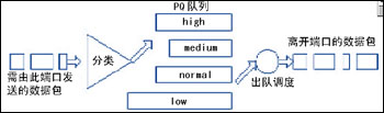 為了實現(xiàn)QoS,需要改變傳統(tǒng)IP網(wǎng)絡的FIFO隊列傳輸報文機制,轉而采用優(yōu)先級隊列(Priority Queueing, PQ)機制,見圖2。