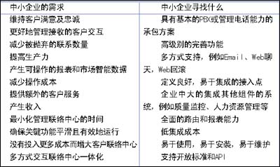 當(dāng)中小企業(yè)從“非正式”轉(zhuǎn)向“正式”客戶中心操作時(shí),他們需要與大型企業(yè)相同的客戶中心能力。對(duì)于這些企業(yè),合適的解決方案必須要解決一個(gè)重要的業(yè)務(wù)問(wèn)題,例如以易于客戶聯(lián)絡(luò)的各種方式交流,使其成為真正的客戶中心。也許更重要的是,實(shí)現(xiàn)成本必須處于控制之下且管理良好。中小企業(yè)期望的是功能完善的客戶聯(lián)絡(luò)中心,但是價(jià)格必須能夠承擔(dān)得起,低花費(fèi),低培訓(xùn)成本,短期內(nèi)即可實(shí)現(xiàn)。