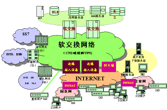 對于部署在專網(wǎng)上的TG及AG/部分IAD設(shè)備 當(dāng)用戶發(fā)起業(yè)務(wù)請求時,網(wǎng)關(guān)設(shè)備將根據(jù)預(yù)設(shè)的SS IP地址將呼叫送至相應(yīng)的SS。