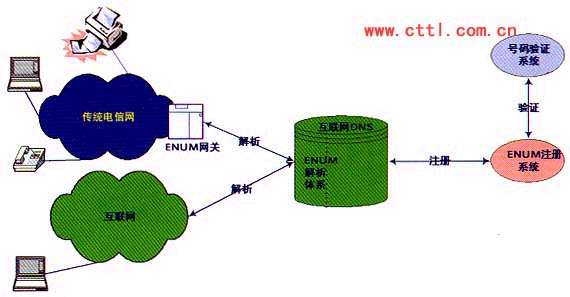 一、引言圖1 引入ENUM機(jī)制的網(wǎng)絡(luò)體系架構(gòu)