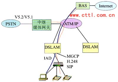 基于Ethernet接入提供分組話音歸根到底仍然是VoIP的解決方案,利用IAD支持H.248或SIP協(xié)議,可以順利地實(shí)現(xiàn)網(wǎng)絡(luò)的演進(jìn)。VoIP