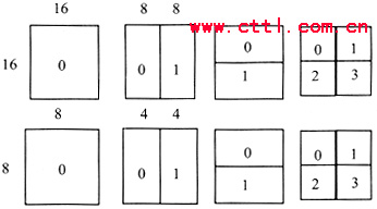 如圖3所示,陰影部分宏塊屬于片組0,白色部分屬于片組1。假設(shè)片組O在傳輸過(guò)程中丟失,由于丟失宏塊的相鄰宏塊都屬于片組1,這樣差錯(cuò)恢復(fù)工具就會(huì)有更多的可利用信息來(lái)恢復(fù)丟失片的數(shù)據(jù)。