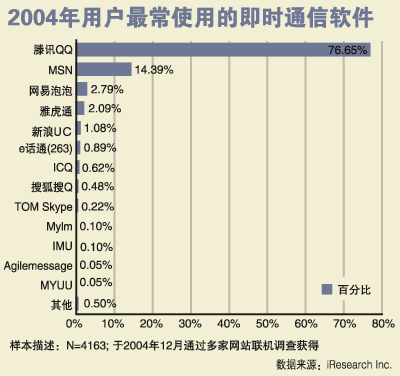 面對(duì)國(guó)外IM市場(chǎng)的火爆,我國(guó)IM軟件市場(chǎng)的發(fā)展前景更加令人充滿(mǎn)期待,據(jù)騰訊公司統(tǒng)計(jì)數(shù)據(jù)顯示,目前騰訊QQ的注冊(cè)賬戶(hù)已經(jīng)突破了4億,活躍用戶(hù)達(dá)到了1.5億,而最高同時(shí)在線(xiàn)賬戶(hù)也突破了1500萬(wàn)戶(hù)大關(guān)。
