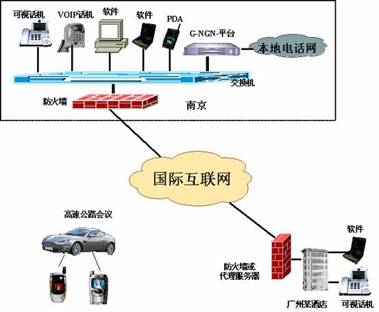 G-NGN-Softswitch產(chǎn)品可以使集團用戶通過租用網(wǎng)絡(luò)運營商的寬帶線路,或者直接借助國際互聯(lián)網(wǎng)組建成連接全市、全省乃至全國的集團內(nèi)部網(wǎng)絡(luò)電話,可以提供可視話機、非可視話機、客戶端軟件、PDA等多種便捷方式實現(xiàn)集團內(nèi)部的可視或非可視通訊。