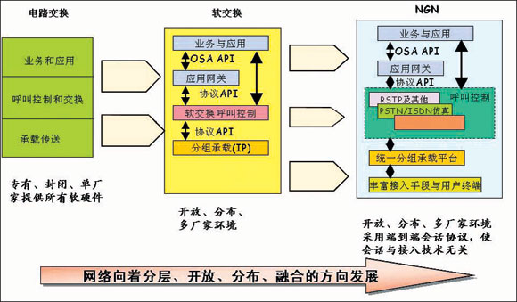 以上問(wèn)題的根源在于PSTN網(wǎng)絡(luò)體系具有天然的封閉性。傳統(tǒng)的PSTN已遠(yuǎn)遠(yuǎn)不能滿足業(yè)務(wù)創(chuàng)新的要求,新業(yè)務(wù)難以全網(wǎng)開(kāi)展、運(yùn)營(yíng)成本高、資源利用率低和全網(wǎng)可持續(xù)發(fā)展性較差。從這一意義出發(fā),NGN的出現(xiàn)為固網(wǎng)運(yùn)營(yíng)商提供了技術(shù)轉(zhuǎn)型和發(fā)展的戰(zhàn)略機(jī)遇及再次振興的希望。