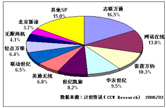 Research)認(rèn)為,隨著IVR市場管理的日益規(guī)范,各中小SP打檫邊球牟利的難度將越發(fā)困難,大型SP憑借品牌、資金、門戶的優(yōu)勢,對(duì)市場的影響力會(huì)越來越強(qiáng)。現(xiàn)有SP的集中程度將逐漸加大。